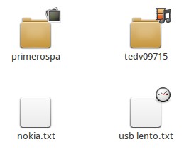 Ahora bien, estos emblemas también se pueden aplicar cualquier archivo. Es decir, no es algo exclusivo para carpetas. Aquí la utilidad es la misma. Por ejemplo, en el caso de la captura anterior, yo le puse un emblema con un relojito al archivo usb lento.txt. De ese modo, me estoy recordando que tengo que trabajar con el contenido de ese archivo en breve. En fin, cada uno tiene sus «códigos».